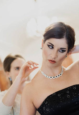 V jedno krásne nedelné ráno sme sa stretli u Henrietky v salóne, kde sa to všetko začalo. Našou múzou bola v tento deň krásna a talentovaná operná speváčka Monika Kyšková, s ktoru Vám onedlho ponúkneme aj rozhovor. Heňka svojimi farbičkami podrthla jej prirodzenú krásu a následne sme sa mohli vydať na cestu, kde sa fotenie konalo. Keďže šperky sú s operou úzkou spojené dali sme za prípravami pomyselnú bodku.