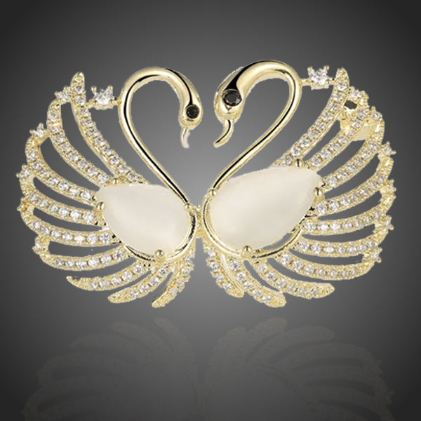 Nádherná ladná dámska brošňa s motívom dvoch labutiek s módnym opálom a čírymi zirkónmi. Zachováva si dlhotrvajúci lesk a jas. Antialergické.
