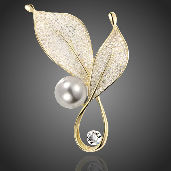 Brošňa lístok s krištáľovou perlou Vellerineta