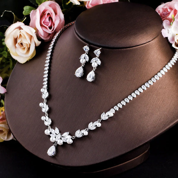 Krásny ladný set so žiarivými čírymi zirkónmi s diamantovým odleskom doplnený drobnými krištáľovými perlami v spoločnosti uchváti. Vhodný aj ako svadobný set. Jeho detaily Vás v skutočnosti nadchnú. Vďaka kvalitnej galvanizácii 3 vrstvou bieleho zlata si zachováva dlhotrvajúci lesk a jas. Bez obsahu niklu, olova, kadmia. Antialergické.