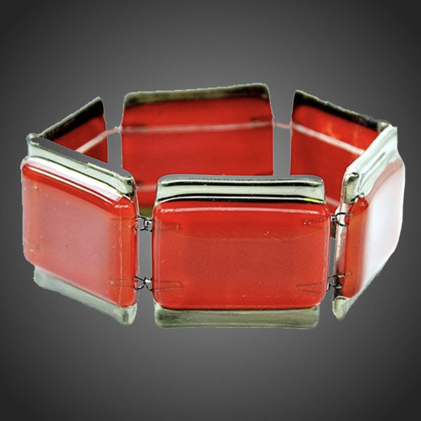 Nádherný originálny náramok v prevedení ručne malovaného červeného odolného skla zdobeného pravou platinou. Všetky kovové komponenty v šperku sú z leštenej chirurgickej ocele 316L, antialergické.