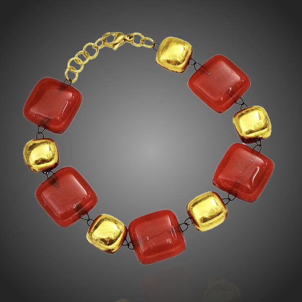 Náramok Arte sklenený červenozlatý kocky