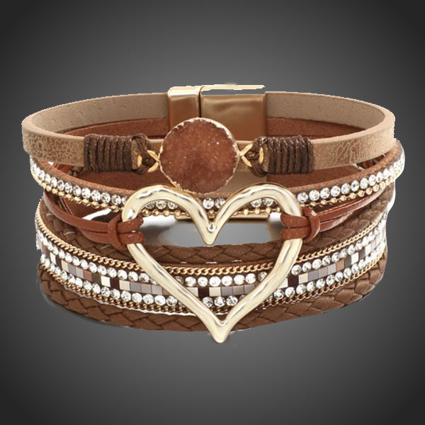 Krásny kožený slabohnedý náramok s akcentom srdca sa stane Vašim milým doplnkom. Uzatváranie na magnet. Antialergické.