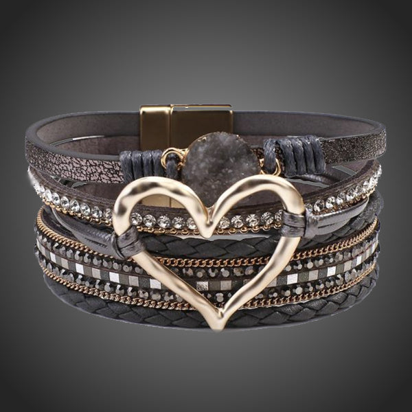 Krásny kožený náramok s akcentom srdca v hnedošedých farbách sa stane Vašim milým doplnkom. Uzatváranie na magnet. Antialergické.