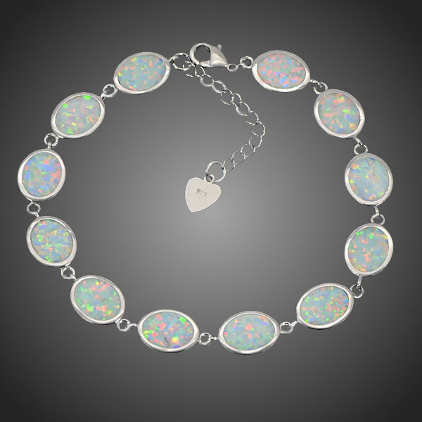 Elegantný náramok s fire mliečnym pálom v oválnom tvare s očarujúcou žiarou bielo-dúhovej. Vďaka galvanizácii si zachováva dlhotrvajúci lesk a jas. Antialergické.