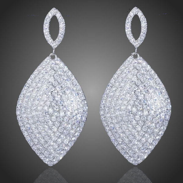 Visiace dámske náušnice v žiari stoviek čírych zirkónov v ladných listoch vyzdvihnú Váš celkový outfit. Vhodné ako spoločenské, či svadobné náušnice. Vďaka galvanizácii 3 vrstvou bieleho zlata si zachovávavjú dlhotrvajúci lesk a jas. Bez obsahu niklu, olova, kadmia. Antialergické.