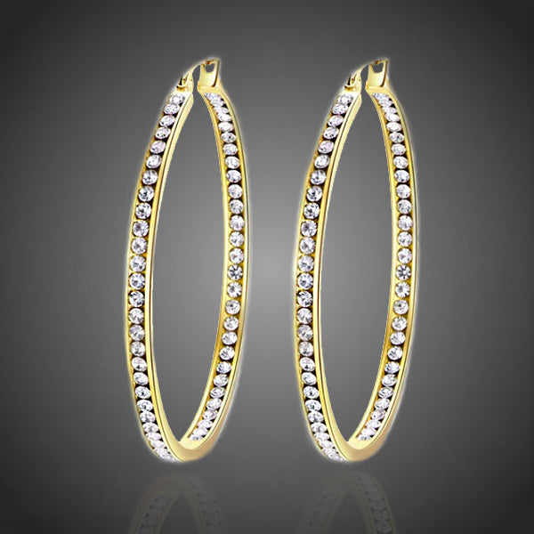 Obľúbené kruhové náušnice z chirurgickej ocele vykladané žiarivými čírymi krištáľmi. Zachováva si dlhotrvajúci lesk a jas. Antialergické.