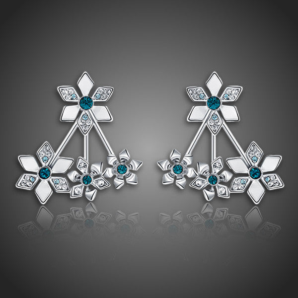Dizajnové kvietkové náušnice s krištáľmi doplnené bielym smaltom. V čom sú tieto náušnice ešte výnimočné? Sú rozdeliteľné. Môžete si dať na uško jeden kvietok, alebo celú kytičku. Kvietky Vás roznežnia a zaujímavý dizajn Vám dodá šmrnc. Zachováva si dlhotrvajúci lesk a jas. Antialergické. Kolekcia Georgia sa vyznačuje spájaním rôznych techník - krištále, farby, smalt, tepané a gravírované prvky. Trendy kúsky pre výnimočné ženy.