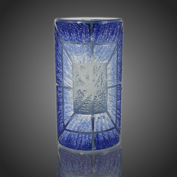 Váza z črepinového skla vo farbách oblohy uchváti všetky oči.Ručná výroba, originálne prevedenie,originálne podpísané.