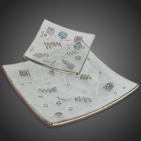 Sada Mís z kolekcie Soul, ohýbané sklo zdobené kovom a platinou. Ručná výroba, zaujímavé prevedenie, originálne podpísané.