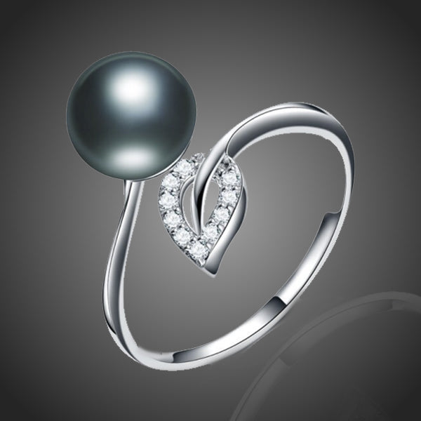 Jemný prsteň s čiernou riečnou perlou doplnený zirkónovým lístkom. Vďaka galvanizácii platinou si zachováva dlhotrvajúci lesk a jas. Bez obsahu niklu, olova, kadmia. Antialergické.Prsteň má jednu univerzálnu nadstaviteľnú veľkosť.
